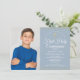 An elegant First Holy Communion save the date invitation featuring delicate gold dust. You can personalise with your celebration details in chic text and a special photo on a dusty blue background. Designed by Thisisnotme©