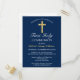 Invite your family and friends to your son's 1st Communion with this Elegant Gold Navy Blue Cross First Holy Communion Postcard Invitation. This design features a beautiful, simple golden cross against a classic dark blue background. Personalise the colour and font and change the date and text to suit your needs. Perfect for a boy's 1st Communion.