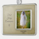 Gold with Silver trim photo ornament with First Holy Communion text and cross. Personalise with name and year. Special Keepsake that can be displayed during the holidays or gifted as a treasured keepsake.