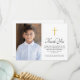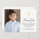 First holy communion golden gradient cross photo thank you card