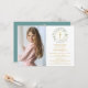 A decorative greenery garland and gold cross sit above your special first holy communion invitation information, complementing your special photo on this elegant design. The reverse features a matching laurel garland and cross. Designed by Thisisnotme©