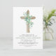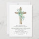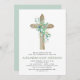 Sage Green Girl's Eucalyptus and Cross Botanical Greenery Watercolor Religious First (1st) Holy Communion Invitations.