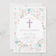 This pretty first holy communion customisable invitation features a colourful frame of illustrated pastel flowers and a matching cross. The name, date, location and details of your special event can be customised for your special religious occasion.