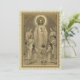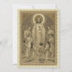 This is a beautiful sepia-toned image of Jesus offering the children their First Holy Communion with angels in adoration. An ecru lace design is in the background.