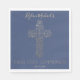 This modern first holy communion paper napkin design features an intricate "gold foil" (simulated) style cross and the words "First Holy Communion" in a modern font. The background is navy blue, but can be customised to any colour of your choice. Add your child's name and religious event date to further customise this party tableware. Matching invitations, party favour boxes, and other coordinating event items are also available.
