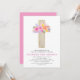 Pastel Pink, Orange and Purple Floral Rose Flowers Cross Botanical Watercolor Religious First (1st) Holy Communion Invitations.