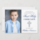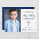 Elegant Blue and Silver First Holy Communion Invitation with Cross and Photo.