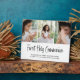 Stylish, modern photo collage plaque. First Holy Communion is featured in a sophisticated typographic script with stylish handwritten lettering on a white background. Customise with a name, the date, the place of the baptism. ideal as a gift or keepsake.