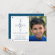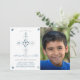 This 5" x 7" First Holy Communion photo invitation card features a grey chalice and wafer (holy communion) surrounded by an ornate cross and the words "First Communion" written in an elegant font. Ideal for your boy's special religious occasion, the text, picture, and background colour (on the back) can be customised to your liking.
