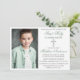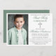 Modern Elegant Sage Green and Silver First Holy Communion Invitation with Cross and Photo.