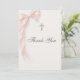 First Holy Communion Pink Coquette Bow Girl Thank You Card