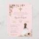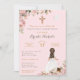 This beautifully designed religious invitation features a brunette haired girl in a traditional white dress, timeless faith-inspired motifs, including a bible, a cross, and delicate rosary beads, symbolizing devotion and blessings. Accented with elegant watercolour floral elements, the design blends spirituality with soft, artistic charm. Perfect for Holy Communion, Baptism, Christening, or other sacred celebrations, this invitation can be personalized to create a meaningful keepsake for your special occasion.