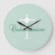 First Holy Communion, Script in Soft Green Large Clock