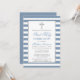 First Holy Communion Silver Dusty Blue Striped Invitation
