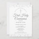 An elegant First Holy Communion save the date invitation featuring delicate silver stardust. You can personalise with your special celebration details in chic silver text and add a special photo on the reverse. Designed by Thisisnotme©