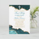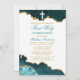Modern Elegant Watercolor Teal and Gold Marble Agate Geode First Holy Communion Invitation