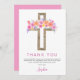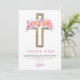 Pastel Pink, Orange and Purple Floral Rose Flowers Cross Botanical Watercolor Religious First (1st) Holy Communion Thank You cards.
