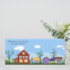 A suburban community with neat homes, open space, green lawns and trees. An attractive announcement for a new home or moving notification.