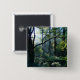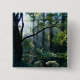 Brilliant white rays of the morning sun streaming from behind dark branches into a rich green summer forest, with massive ivy-covered trees and fertile underbrush.