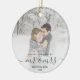 Commemorate the first Christmas of your marriage with this beautiful modern keepsake ornament. The charcoal gray text reads "Our first Christmas as Mr & Mrs," with the words "Mr & Mrs" in elegant handwriting script with flourishes before and after. Replace the sample image with your favorite photo, and add your last name and the year. A white gradient filter helps make the text pop.