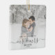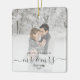 First Married Christmas Custom Photo Grey Script Ceramic Ornament