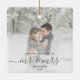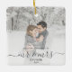 Commemorate the first Christmas of your marriage with this beautiful modern keepsake ornament. The charcoal grey text reads "Our first Christmas as Mr & Mrs," with the words "Mr & Mrs" in elegant handwriting script with flourishes before and after. Replace the sample image with your favourite photo, and add your last name and the year. A white gradient filter helps make the text pop.