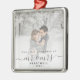 First Married Christmas Custom Photo Grey Script Metal Ornament