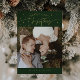 Minimal and elegant holiday card for the newlyweds celebrating their first Christmas together as husband and wife featuring a text that says "our first married Christmas" with dots and hearts. The background is green.