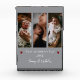 Personalise a unique keepsake for a new mum celebrating her first Mother's Day with this grey three photo collage photo block. Photo block design features three photo placements in panel form with modern typography and elegant script and two red hearts. Perfect photo keepsake for mum's celebrating their first Mother's Day.