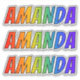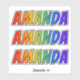 This fun, multicolored, and exciting sticker design features the common first name or given name "AMANDA", with the letters of the name having a colourful rainbow spectrum like gradient colouring pattern. It might be a fun present to give to somebody named Amanda. [~Z0000361]