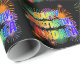 This lively and fun birthday-themed wrapping paper design has the message "HAPPY BIRTHDAY, ANDREA" having a colourful rainbow spectrum inspired gradient pattern, and a vibrant bursting celebratory fireworks inspired background pattern. Vibrant wrapping paper like this might be used when wrapping birthday gifts or presents that are being given to somebody named Andrea. [~Z0000456]