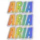This vibrant, multicolored, and fun sticker design features the common first name or given name "ARIA", with the letters of the name having a colourful rainbow spectrum like gradient colouring pattern. It might be a fun present to give to somebody named Aria. [~Z0000361]