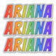 This exciting, fun, and multicolored sticker design features the common first name or given name "ARIANA", with the letters of the name having a colourful rainbow spectrum like gradient colouring pattern. It might be a fun present to give to somebody whose first name is Ariana. [~Z0000361]