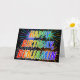 This multicolored and fun birthday greeting card design features the message "HAPPY BIRTHDAY," and the common first name "BENJAMIN" with the letters having a colourful rainbow spectrum like gradient colouring pattern. The background of the front also features a colourful pattern inspired by the appearance of bursting celebratory fireworks. The inside features a customised greeting message, or could perhaps be cleared and left blank if a message is to be written by hand instead. A birthday greeting card like this could be fun to give to somebody named Benjamin on their birthday. [~Z0000350]