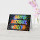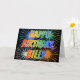 This multicolored and fun birthday greeting card design features the message "HAPPY BIRTHDAY," and the common first name "BILLY" with the letters having a colorful rainbow spectrum like gradient coloring pattern. The background of the front also features a colorful bursting fireworks inspired pattern. The inside features a customized greeting message, or could perhaps be cleared and left blank if a message is to be written by hand instead. A birthday greeting card like this might be a fun way to acknowledge the birthday of somebody named Billy. [~Z0000350]