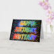 This vibrant, multicolored and fun birthday greeting card design features the message "HAPPY BIRTHDAY," and the common first name "BRITTANY" with the letters having a colourful rainbow spectrum like gradient colouring pattern. The background of the front also features a colourful bursting fireworks inspired pattern. The inside features a customisable greeting message, or could perhaps be cleared and left blank if a message is to be written by hand instead. A birthday greeting card like this might be a fun way to acknowledge the birthday of somebody named Brittany. [~Z0000350]