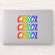 This vibrant, exciting, and multicolored sticker design features the common first name or given name "CAROL", with the letters of the name having a colourful rainbow spectrum like gradient colouring pattern. It might be a fun gift to give to somebody named Carol. [~Z0000361]