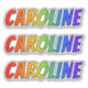 This exciting, multicolored, and vibrant sticker design features the common first name or given name "CAROLINE", with the letters of the name featuring a colourful rainbow spectrum inspired gradient colouring pattern. It might be a fun present to give to somebody whose first name is Caroline. [~Z0000361]