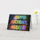 This vibrant, multicolored and fun birthday greeting card design features the message "HAPPY BIRTHDAY," and the common first name "CHARLES" with the letters having a colorful rainbow spectrum like gradient coloring pattern. The background of the front also features a colorful pattern inspired by the look of bursting celebratory fireworks. The inside features a custom greeting message, or could perhaps be cleared and left blank if a message is to be written by hand instead. A birthday greeting card like this might be a fun way to acknowledge the birthday of somebody named Charles. [~Z0000350]