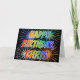 This fun, vibrant, multicolored birthday greeting card design features the message "HAPPY BIRTHDAY," and the common first name "CHRIS" with the letters having a colourful rainbow spectrum like gradient colouring pattern. The background of the front also features a colourful pattern inspired by the look of bursting celebratory fireworks. The inside features a customised greeting message, or could perhaps be cleared and left blank if a message is to be written by hand instead. This might be a fun way to acknowledge the birthday of somebody named Chris. [~Z0000350]
