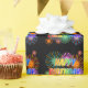 This exciting and fun birthday-themed wrapping paper design has the message "HAPPY BIRTHDAY, CHRISTOPHER" having a colourful rainbow spectrum inspired gradient pattern, and a vibrant bursting celebratory fireworks inspired background pattern. Colourful wrapping paper like this might be used when wrapping birthday gifts/presents that are being given to somebody named Christopher. [~Z0000456]
