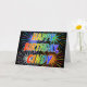 This fun, vibrant, multicolored birthday greeting card design features the message "HAPPY BIRTHDAY," and the common first name "CINDY" with the letters having a colourful rainbow spectrum like gradient colouring pattern. The background of the front also features a colourful bursting fireworks inspired pattern. The inside features a customised greeting message, or could perhaps be cleared and left blank if a message is to be written by hand instead. A greeting card like this might be a fun way to send a personalised birthday message to somebody named Cindy. [~Z0000350]