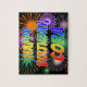 This fun and lively birthday-themed jigsaw puzzle design features the message "HAPPY BIRTHDAY, CORA" having a colourful rainbow spectrum inspired gradient pattern, and an exciting bursting celebratory fireworks inspired background pattern. An exciting puzzle like this might be used to send birthday wishes to somebody named Cora. [~Z0000465]