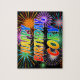 This exciting and fun birthday-themed jigsaw puzzle design has the message "HAPPY BIRTHDAY, CORY" having a colorful rainbow spectrum inspired gradient pattern, and a vibrant bursting celebratory fireworks inspired background pattern. A colorful puzzle like this might be a fun way to send birthday greetings to somebody named Cory. [~Z0000465]