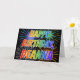 This vibrant, multicolored and fun birthday greeting card design features the message "HAPPY BIRTHDAY," and the common first name "DEANNA" with the letters having a colorful rainbow spectrum like gradient coloring pattern. The background of the front also features a colorful pattern inspired by the appearance of bursting celebratory fireworks. The inside features a customized greeting message, or could perhaps be cleared and left blank if a message is to be written by hand instead. This might be a fun way to acknowledge the birthday of somebody named Deanna. [~Z0000350]