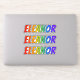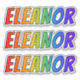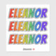 This exciting, fun, and multicolored sticker design features the common first name or given name "ELEANOR", with the letters of the name featuring a colourful rainbow spectrum inspired gradient colouring pattern. It might be a fun gift to give to somebody named Eleanor. [~Z0000361]