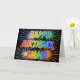 This vibrant, multicolored and fun birthday greeting card design features the message "HAPPY BIRTHDAY," and the common first name "EMMA" with the letters having a colourful rainbow spectrum like gradient colouring pattern. The background of the front also features a colourful pattern inspired by the appearance of bursting celebratory fireworks. The inside features a personalised greeting message, or could perhaps be cleared and left blank if a message is to be written by hand instead. A birthday greeting card like this could be a fun way to send a customisable birthday greeting message to somebody named Emma. [~Z0000350]
