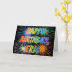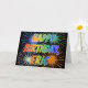 This vibrant, multicolored and fun birthday greeting card design features the message "HAPPY BIRTHDAY," and the common first name "ERIC" with the letters having a colourful rainbow spectrum like gradient colouring pattern. The background of the front also features a colourful pattern inspired by the appearance of bursting fireworks. The inside features a customisable greeting message, or could perhaps be cleared and left blank if a message is to be written by hand instead. A birthday greeting card like this could be fun to give to somebody named Eric on their birthday. [~Z0000350]