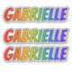 This fun, vibrant, and exciting sticker design features the common first name or given name "GABRIELLE", with the letters of the name featuring a colourful rainbow spectrum like gradient colouring pattern. It might be a fun gift to give to somebody whose first name is Gabrielle. [~Z0000361]