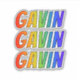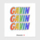 This exciting, multicolored, and vibrant sticker design features the common first name or given name "GAVIN", with the letters of the name featuring a colourful rainbow spectrum inspired gradient colouring pattern. It might be a fun gift to give to somebody whose first name is Gavin. [~Z0000361]